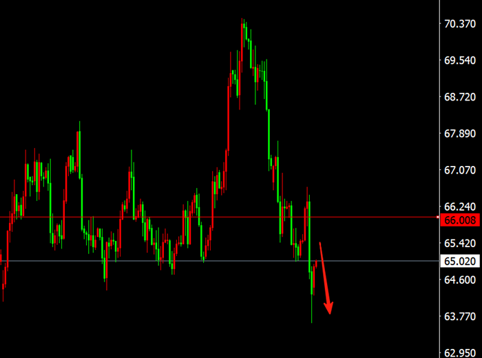 操作建议:反弹65.5--66一线做空 ,目标看64--63附近